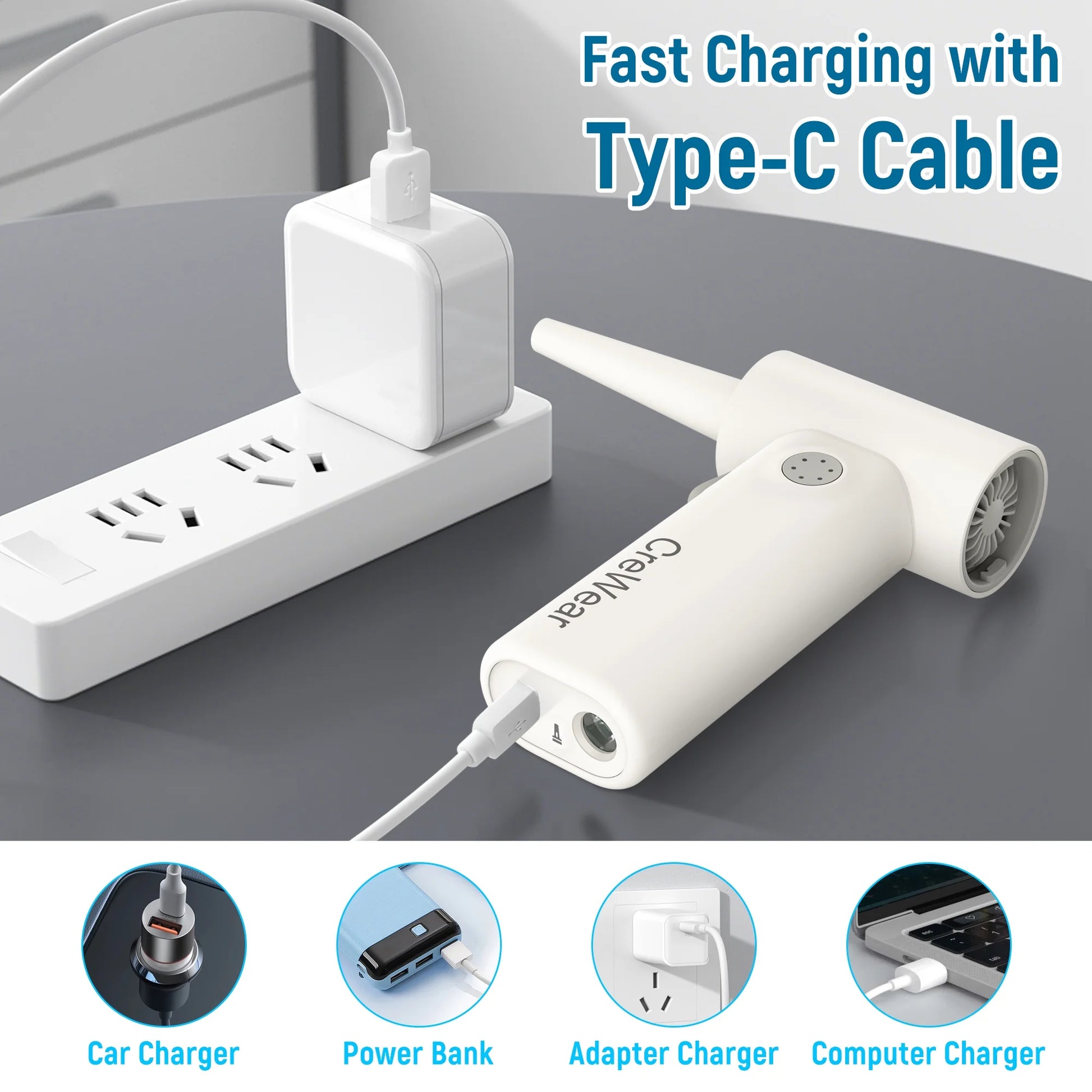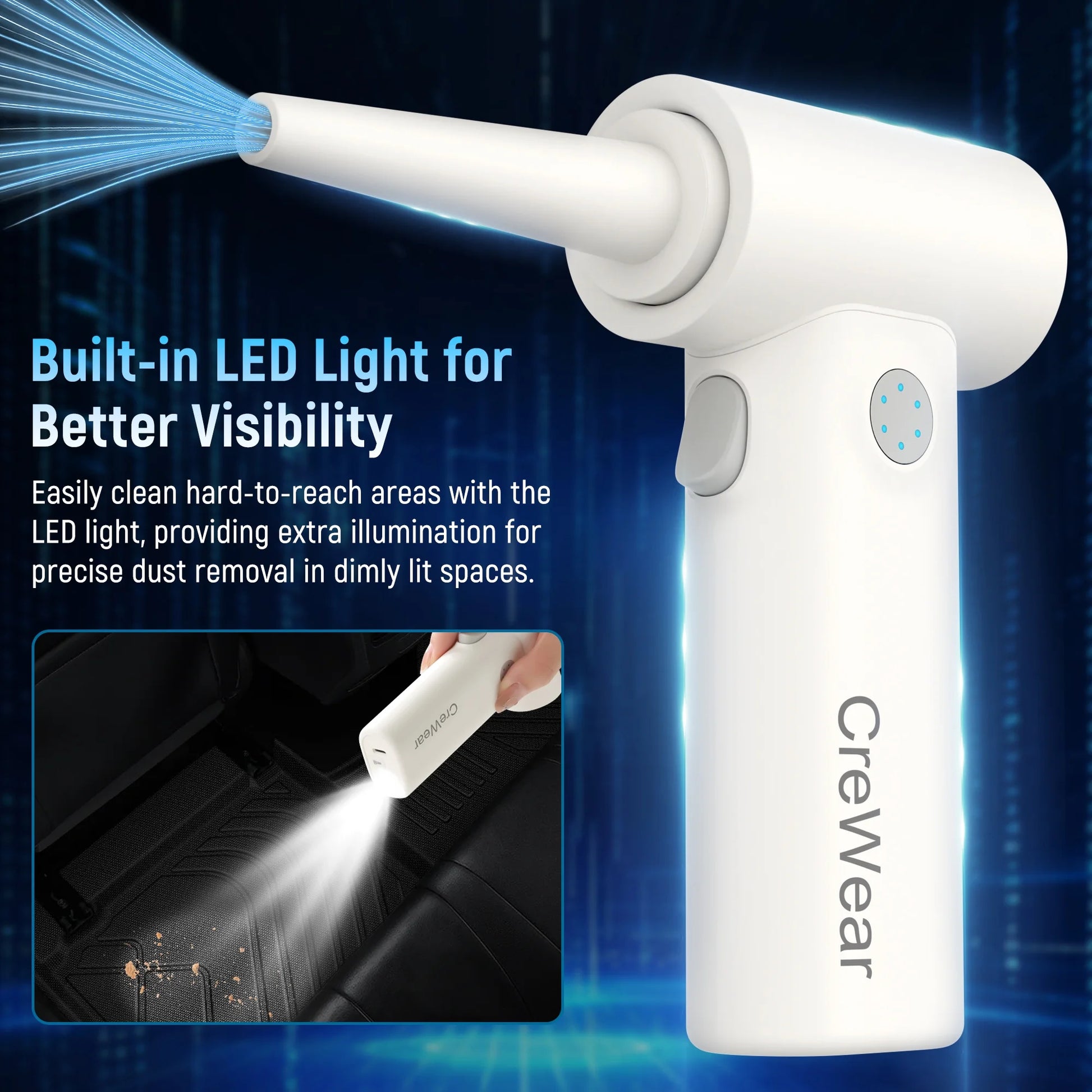 CreWear Compressed Air Duster 11000RPM Cordless Keyboard Air Cleaner for Electronics