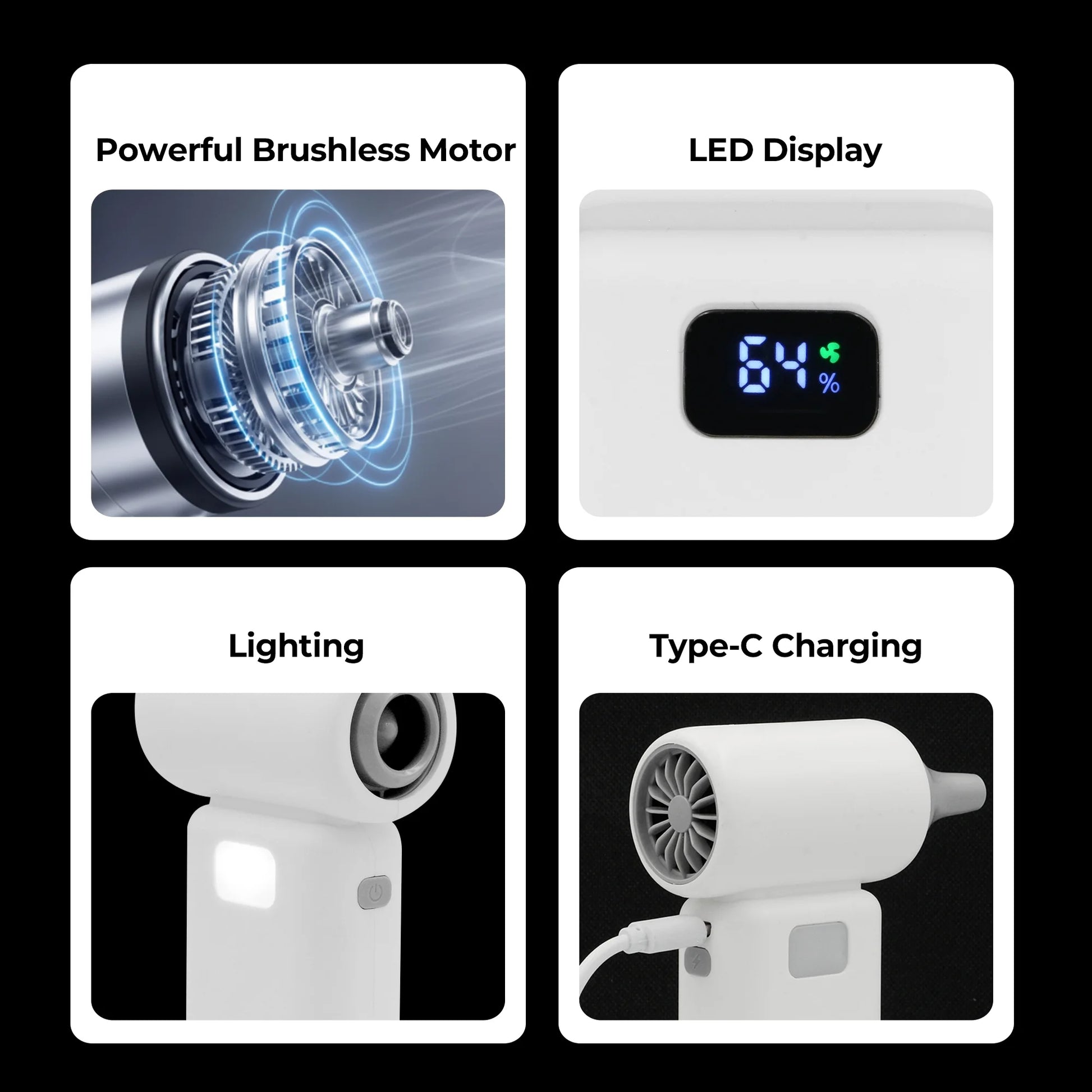 - Built-in Safety Features: Equipped with LED lights and an SOS mode, the electric air duster enhances safety during outdoor activities. It also includes over-temperature protection for worry-free use, ensuring reliable performance every time.