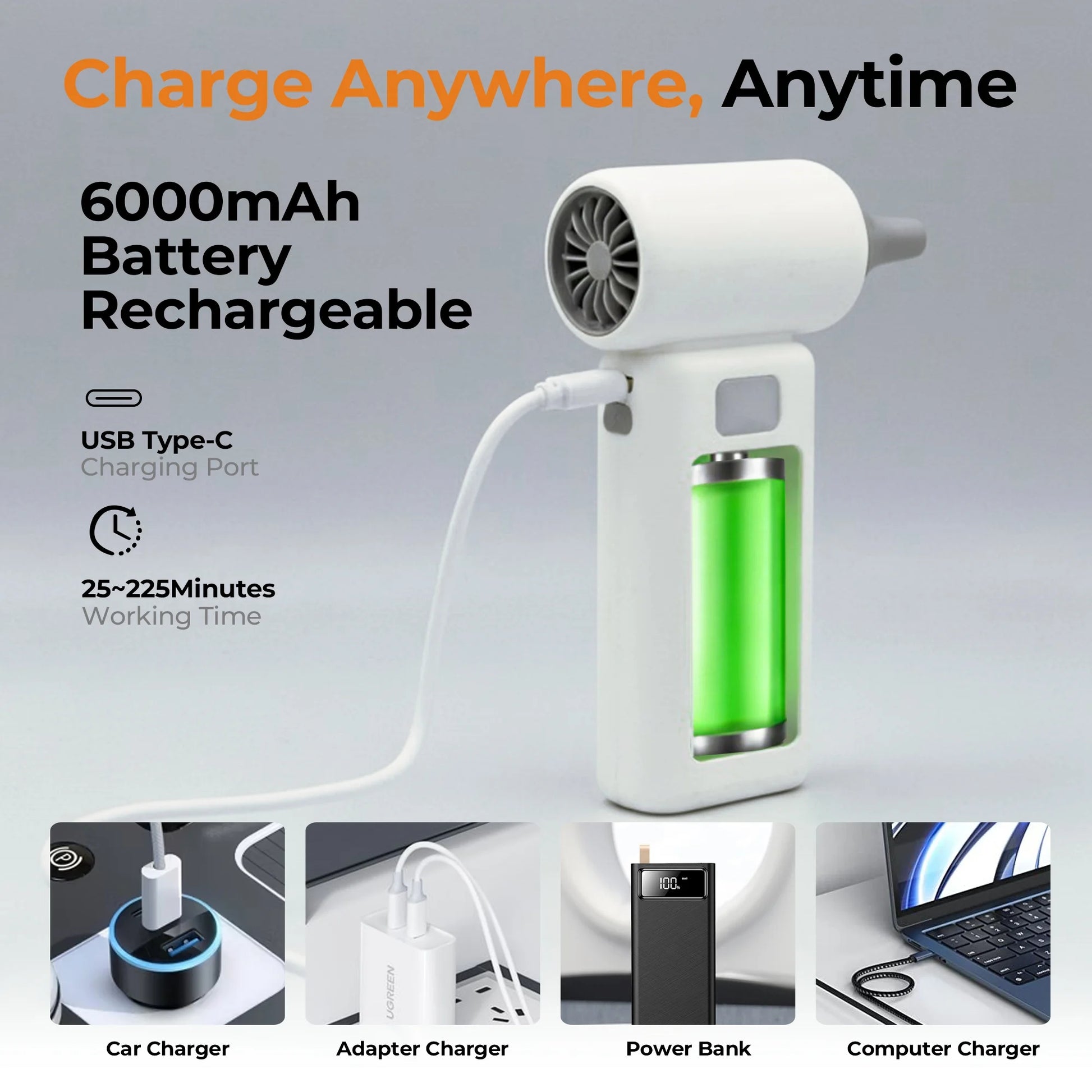 - Economical & Reusable: Crafted from high-quality materials and powered by a robust 6000 mAh battery, this electric air duster offers a sustainable, cost-effective alternative to disposable air cans, elevating your cleaning routine.