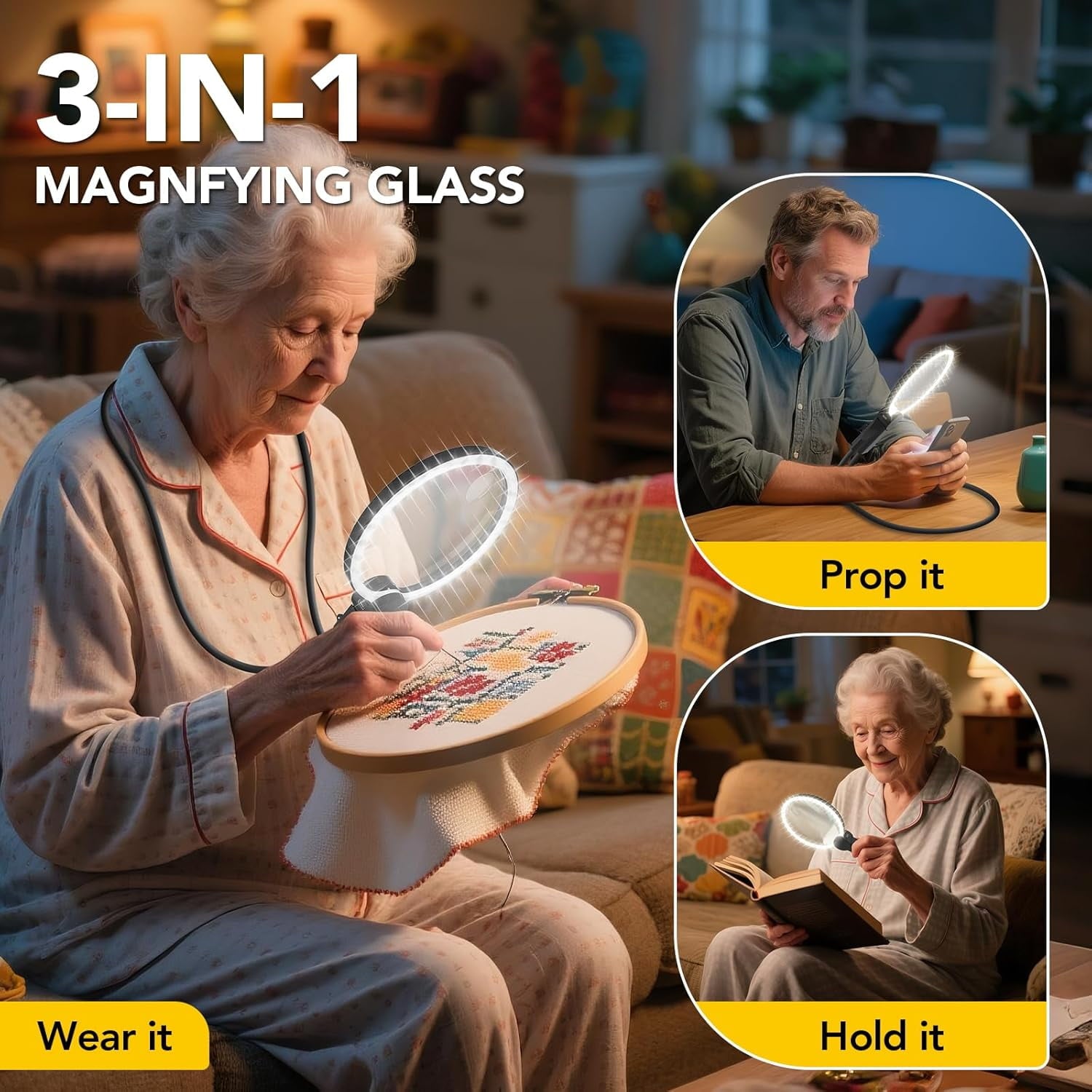 Great Gift for Seniors: A thoughtful gift for elderly or visually impaired loved ones. Perfect for reading small print, labels, sewing, crafts, cross-stitch, and more. Its clear magnification and comfortable lighting make daily tasks easier and more enjoyable.