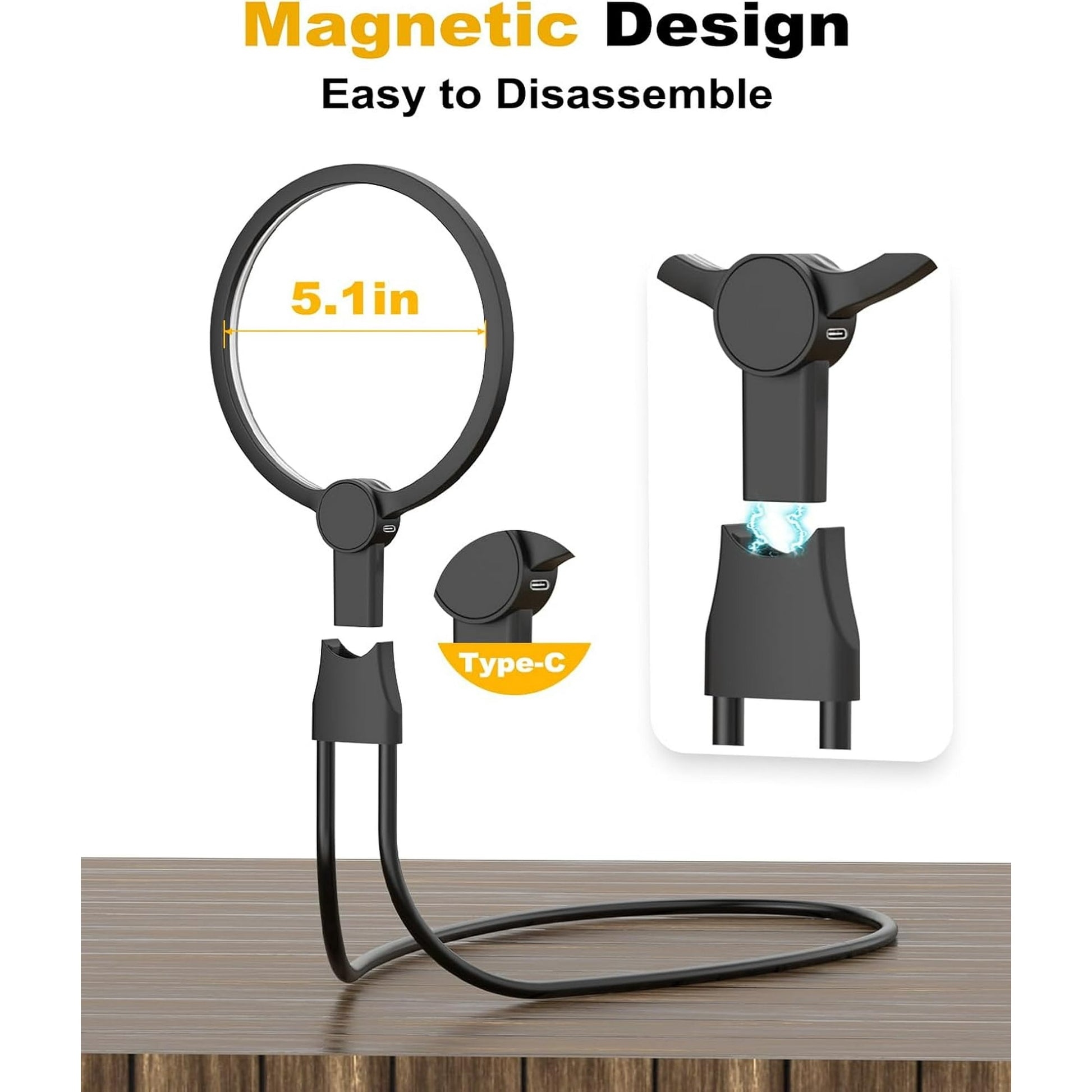 Hands-Free: This magnifier with light features a soft, adjustable gooseneck stand. It can be adjusted to different angles and heights, or placed on a table. Lightweight and comfortable for long sessions, ideal for reading, crafts, or precision work.